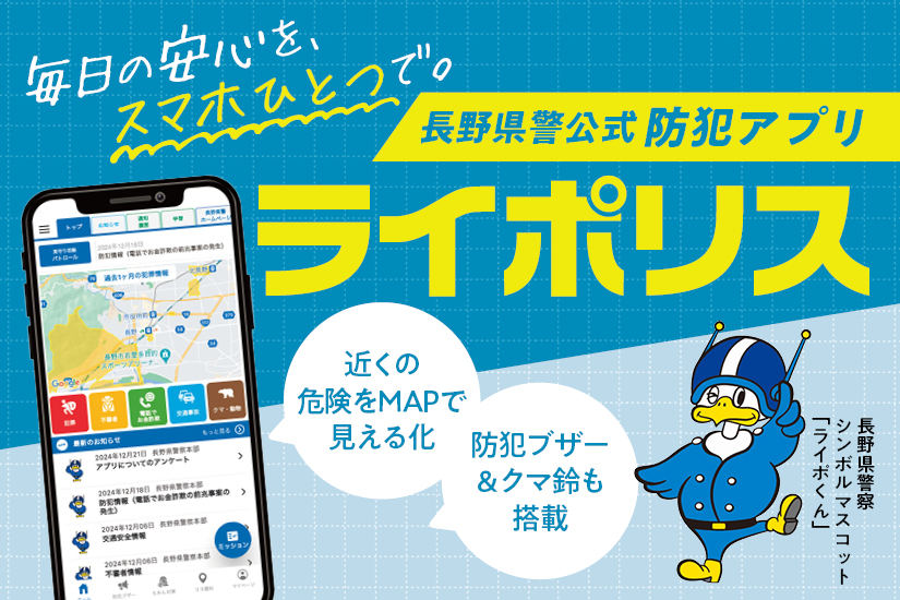 最新の犯罪情報の配信から、防犯ブザー&クマ鈴まで多機能搭載!5万4千人が利用する長野県民に人気の警察公式アプリ「ライポリス」の魅力を徹底紹介!@長野県(PR)
