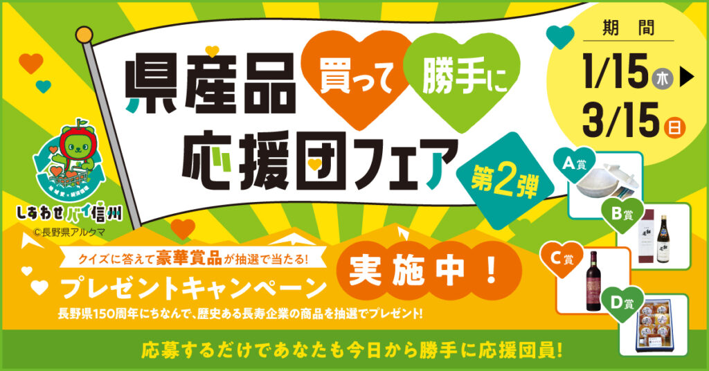 「県産品買って勝手に応援団フェア第二弾」開催中!『しあわせバイ信州』県産品を消費して信州の未来を選ぼう(PR)