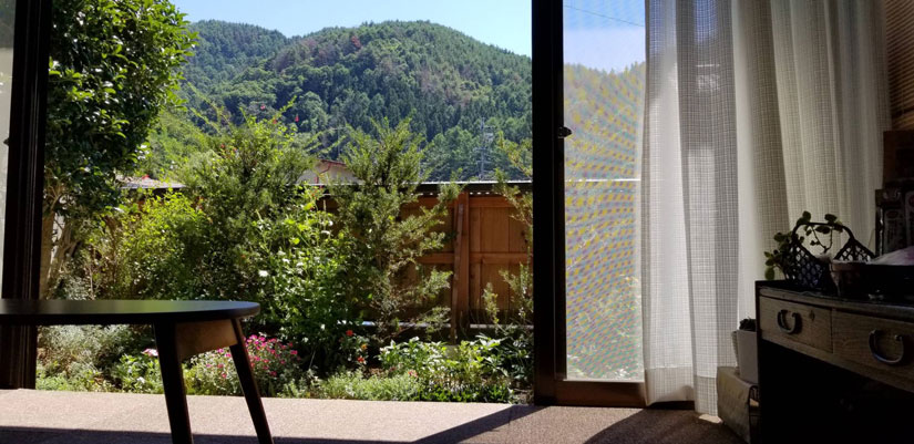 そして、温泉から上がったら、用意されたヘンプの服に着替えて、2階のトリートメントルームに移動。部屋の窓からは庭と山々の風景が見え、静かな雰囲気の中、施術がスタート。