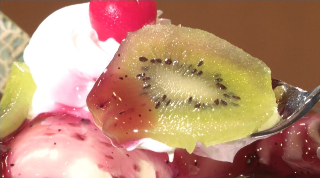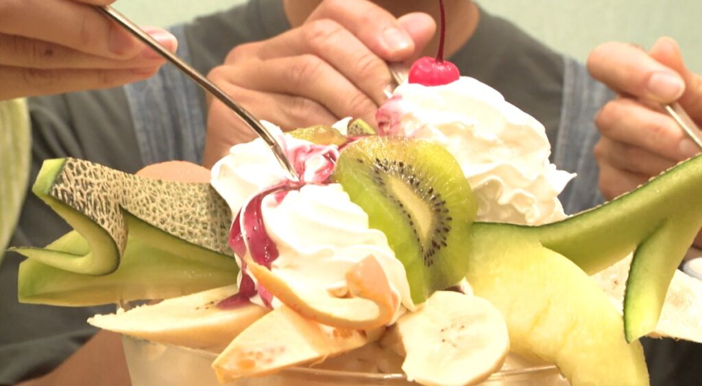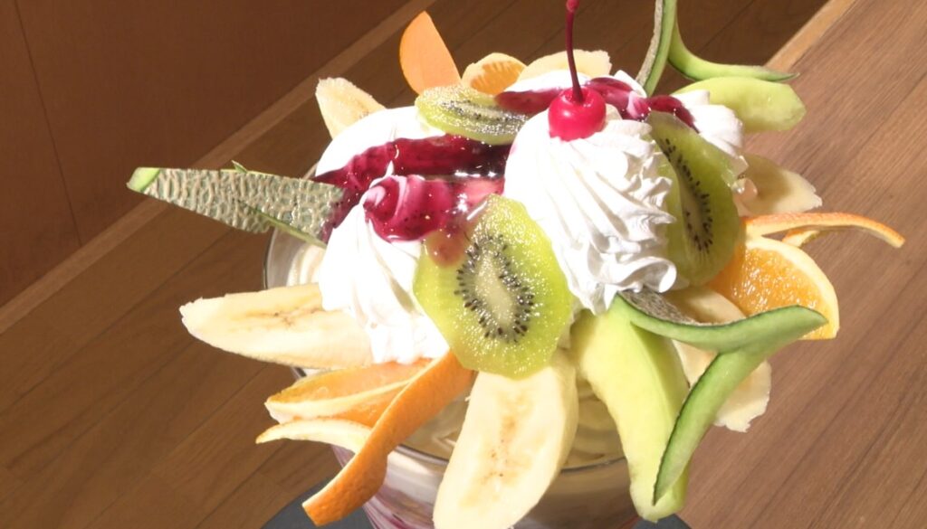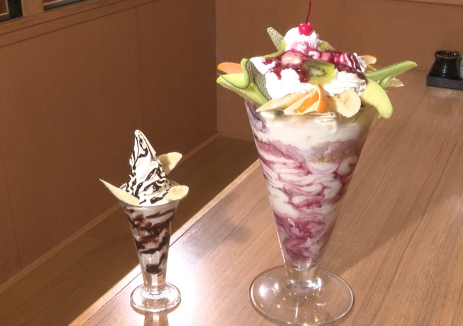 売れ行きを伺うと「平日で1日3個ぐらい、土日なら10個ぐらい」とのこと。人気メニューですね。抹茶の「キングパフェ」などもあり、秋はマロンの「キングパフェ」も楽しめるそうです。