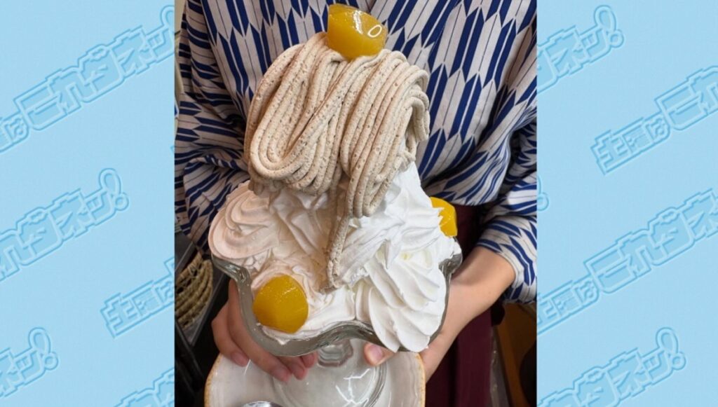 シェアして食べたいデカ大盛りグルメ。最後はスイーツです。イオンスタイル上田内にある『こだわり和食と甘味処 暖家 上田店』では、そびえ立つような特大パフェが楽しめますよ!