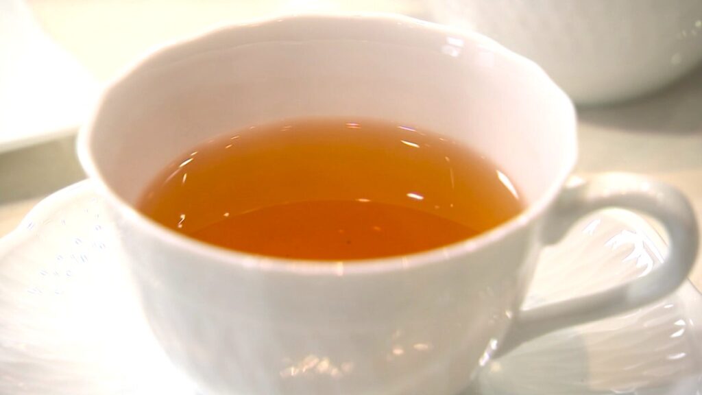 この紅茶には、シナモン、オレンジ、グローブの実がブレンドされていて、グローブの実が自然な甘さを出しているということです。