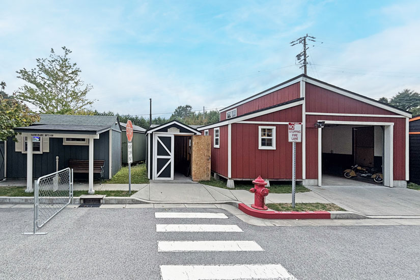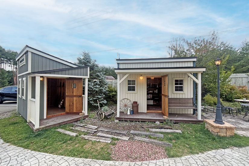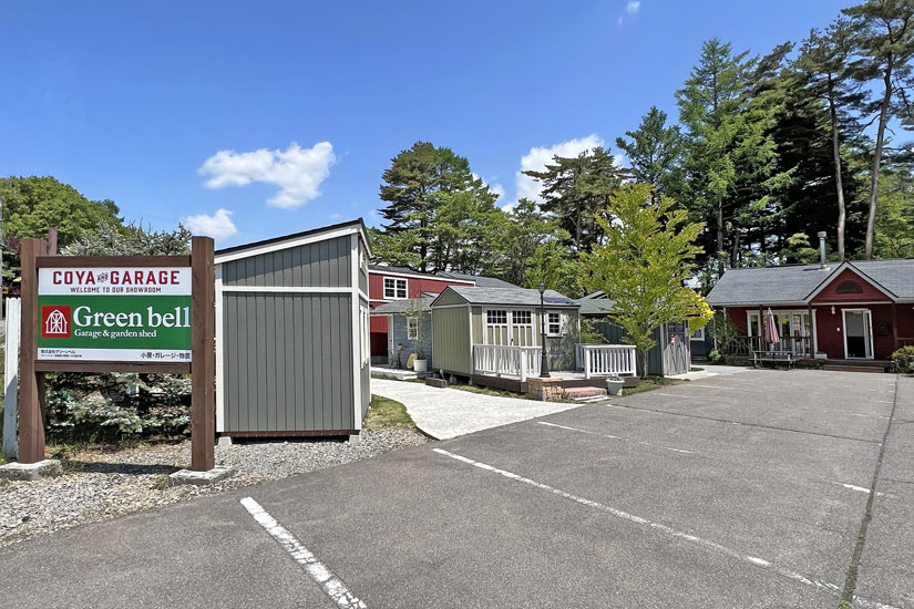 マルシェが開催される「グリーンベル本社展示場」は、大小様々な小屋やガレージが並び、まるで街のように形成された独特の展示場。プライベートな部屋やガレージ、カフェやサロンなどの店舗やオフィスとして利用できる様々なタイプの小屋や物置が多彩に建ち並んでいます。 街並みのように形成されているので、自分の思うスタイルとのイメージが作りやすいのが特徴。この展示場では、経験豊富なスタッフが親切丁寧に相談に乗ってくれ、好みのスタイルに合った小屋・物置を提案してくれます。