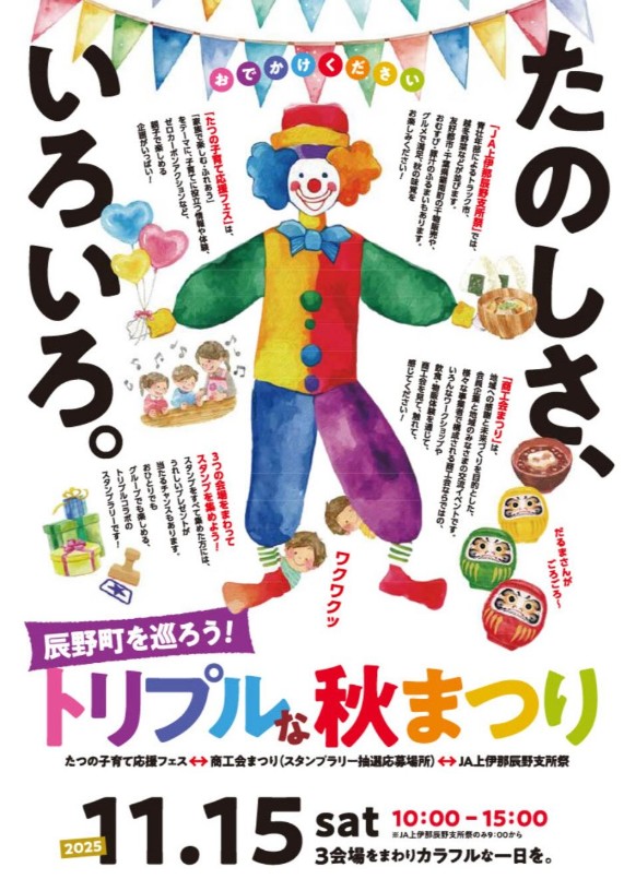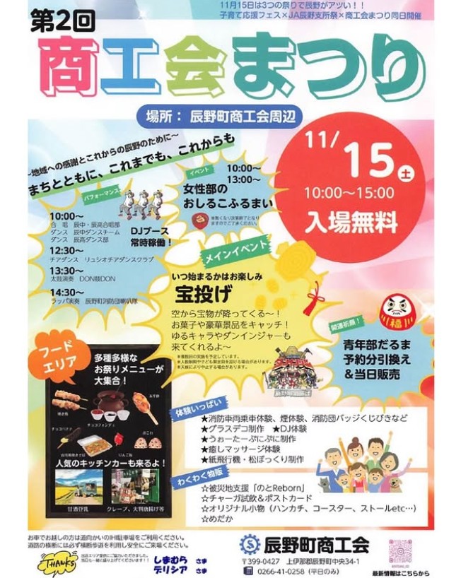 ■11/15(土) 『第2回商工会まつり』『たつの子育て応援フェス』『JA上伊那辰野支所祭』(辰野町)