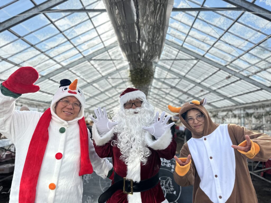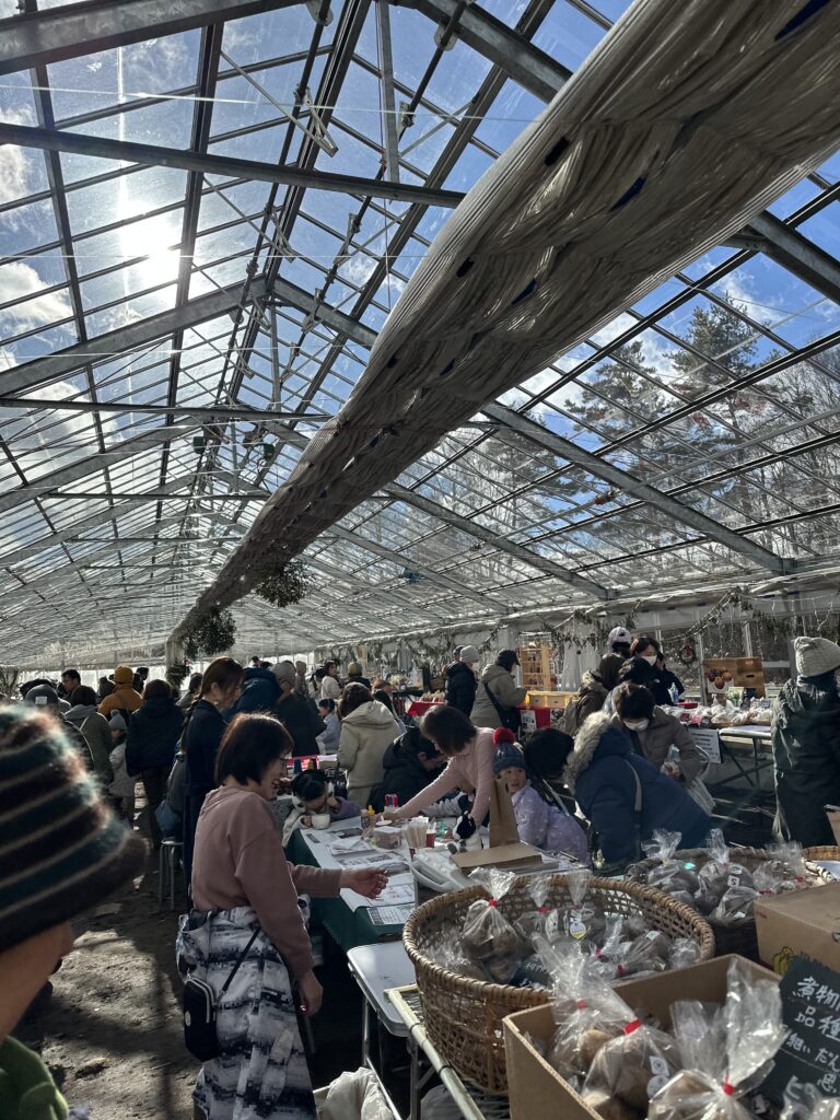 冬でも20℃以上になる花栽培用のガラス温室を活用しようと始まったイベント。今年も4日間にわたって開かれます。クラフト、雑貨、キッチンカーなど、4日間で約50店が出店!ビンゴ大会、パフォーマーが多数出演するステージ、リースづくり、落ち葉プール、焚火でマシュマロと盛りだくさんの内容。実習生が心を込めて育てたトウモロコシや野菜、大学校の牛乳を使用したコーンスープ、ビーフシチューをはじめ、温かい食事も!