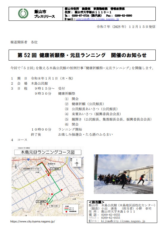 ■1/1(木・祝) 『第52回 健康祈願・元旦ランニング』(飯山市)