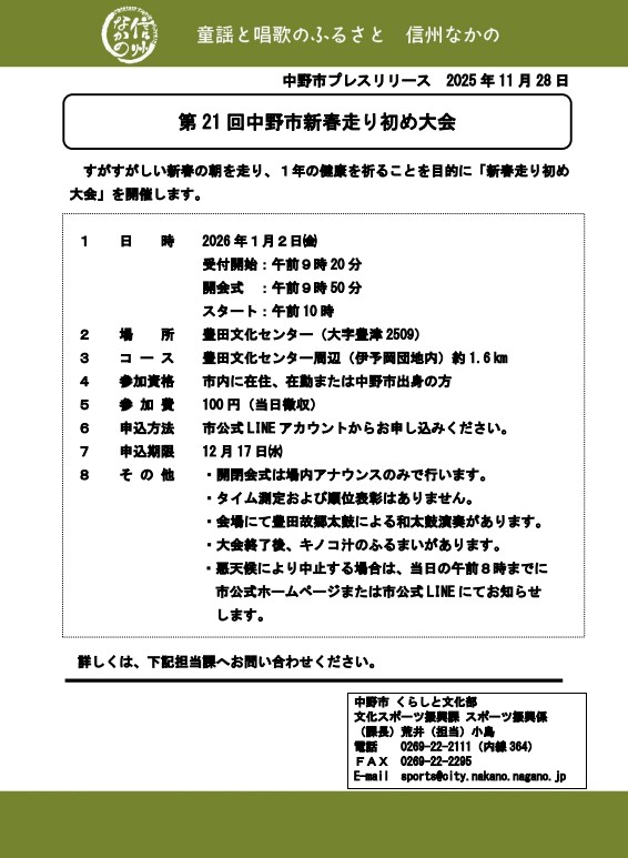 ■1/2(金) 『第21回 中野市新春走り初め大会』
