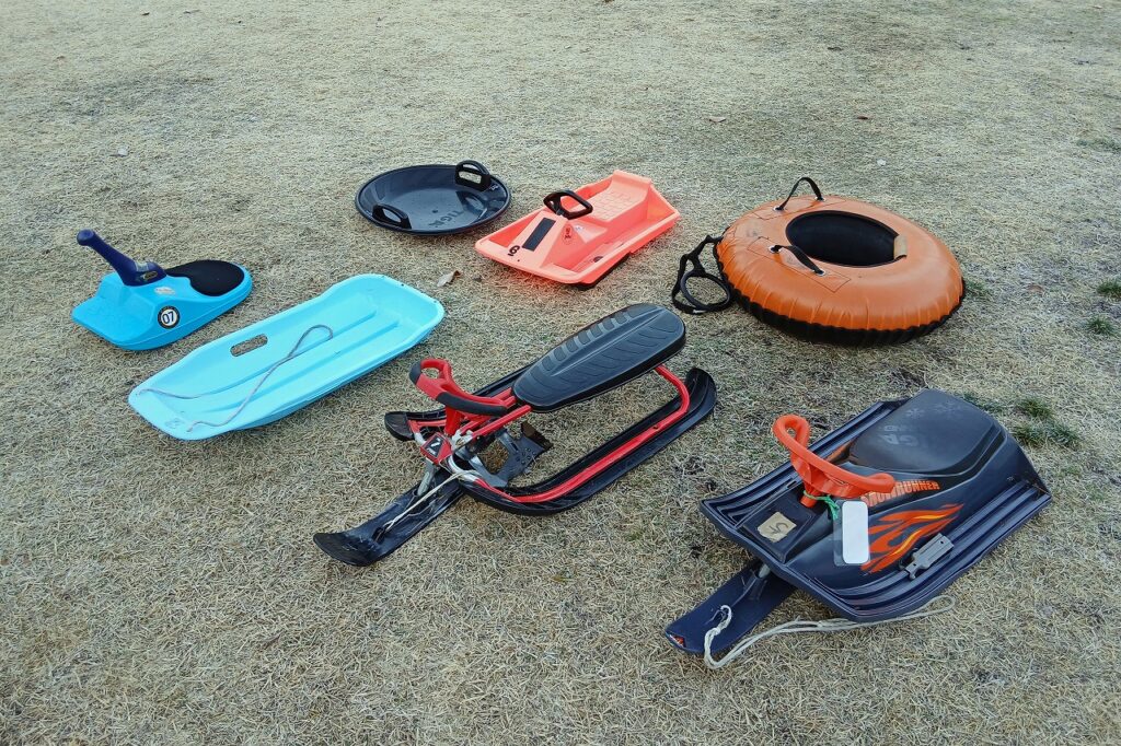 公園内に、そりの滑走エリアが出現! 通常のそりに加え、スノーレーサーやスノーチューブなど、多彩なそりを無料レンタルで楽しめます。「入口広場」はキッズボードパークとして展開し、スノーキックボードなどを用意。スノーシューや歩くスキーも無料でレンタル。ふかふかの新雪に覆われた森を歩く体験は格別です。雪遊びの幅が広がりますね。