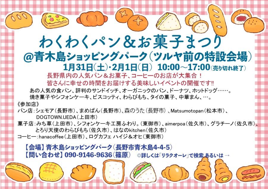 ■1/31(土)・2/1(日) 『わくわくパン&お菓子まつり@青木島ショッピングパーク』(長野市)