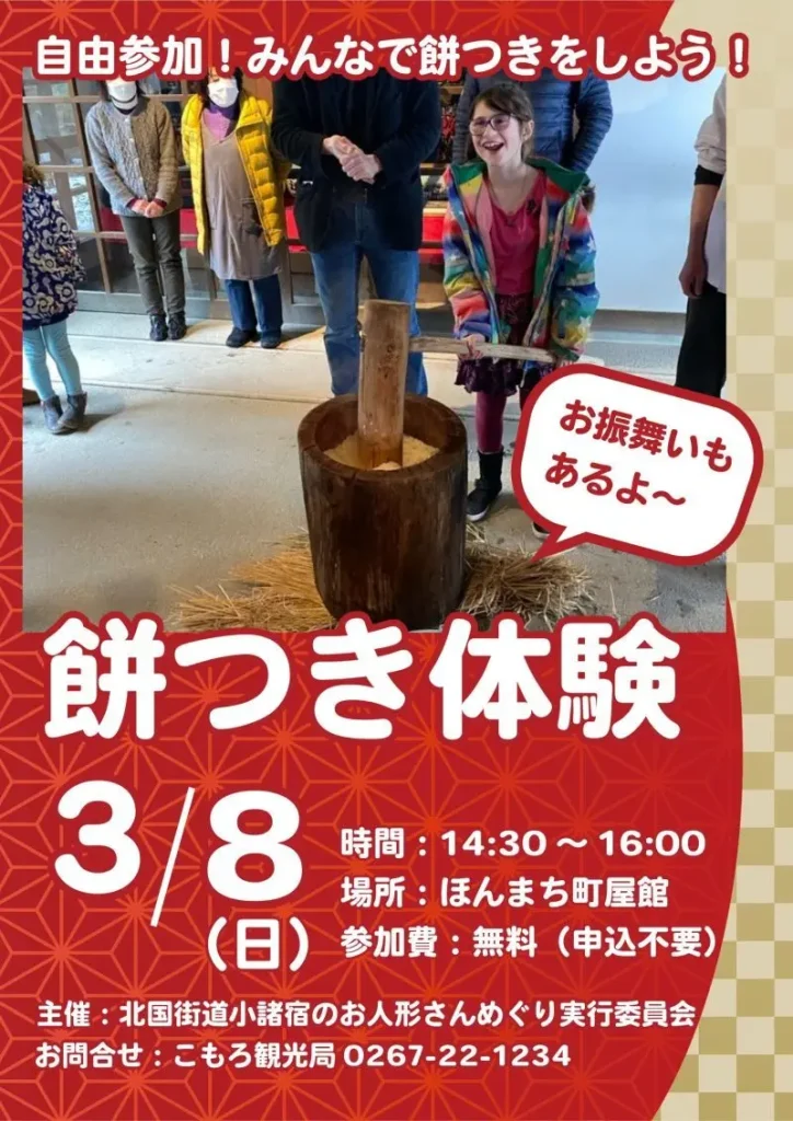 ■3/8(日) 北国街道小諸宿のお人形さんめぐり『餅つき体験』(小諸市)