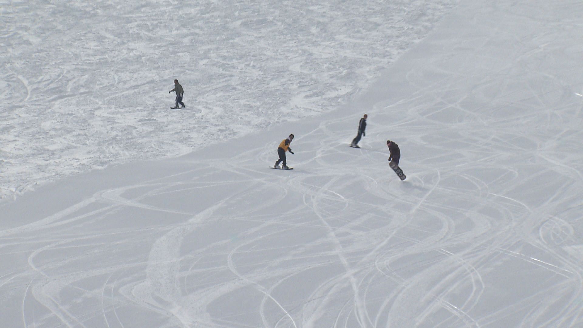 「こちらゲレンデを見渡してみても、スキーヤーやスノーボーダーの姿、ほとんどありません」