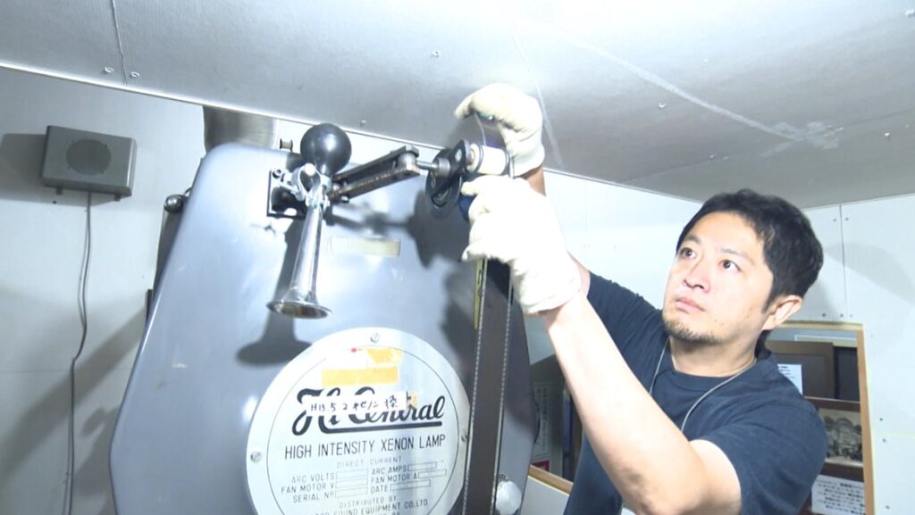 特別に上映してもらうと、フィルムならではの、どこか温かみのある映像がスクリーンに。昔は「パラパラ漫画」の要領で、1秒間に24コマ、スライドさせて上映していたんですね。