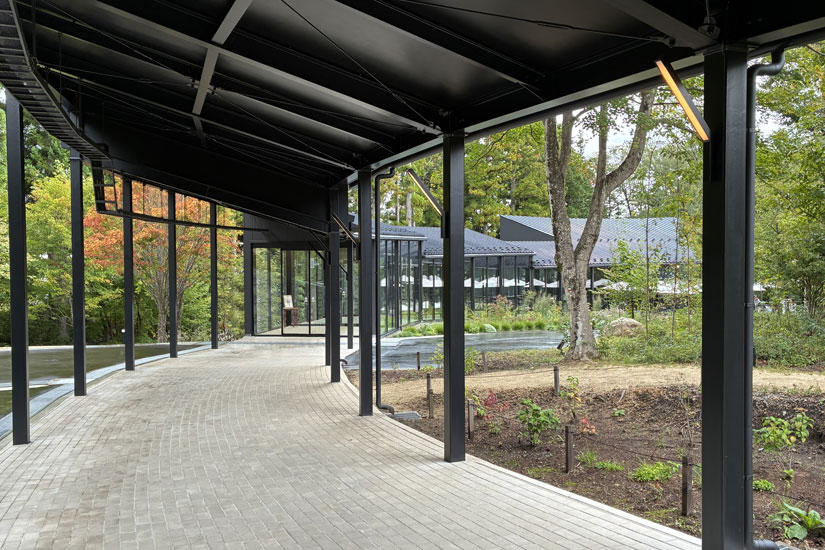 「おいしい、たのしい、すこやかな体験」がコンセプトの体験型複合施設は、静かに佇む広大な森の中に「集いの森」、「散策の森」、「眺望の丘」と3つのエリアに分かれており、豊かな自然の中で川のせせらぎに耳を傾けながら、様々な過ごし方を体験できます。