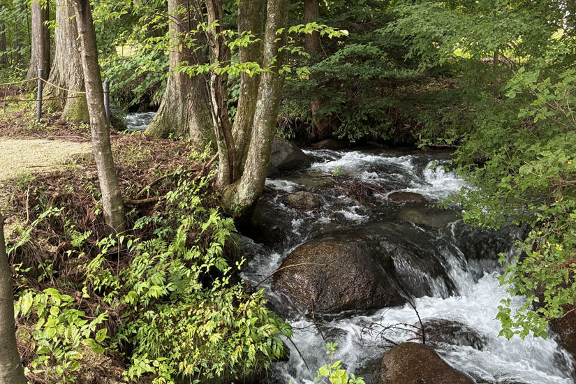 木々や中央アルプスから流れる清流を眺めながらの散策は、日頃の喧騒から心を解き放ってくれます。