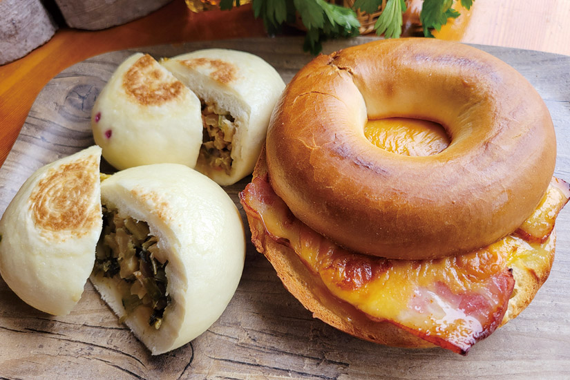 「おやき」や「ベーグル」、「野沢菜チーズホットサンド」、「ドーナツ」など軽食も充実のラインナップです。ぜひ気軽に立ち寄ってみてください。