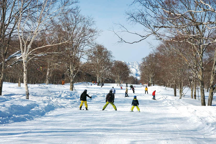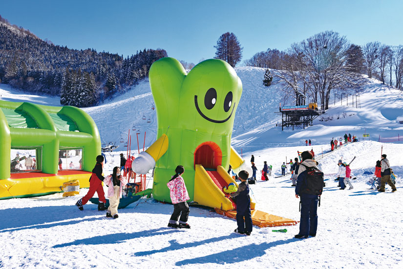 野沢温泉スキー場のメインゲレンデである「日影ゲレンデ」は、スクール、託児所、キッズパークなど各種施設が充実。家族連れでも安心して楽しめます。