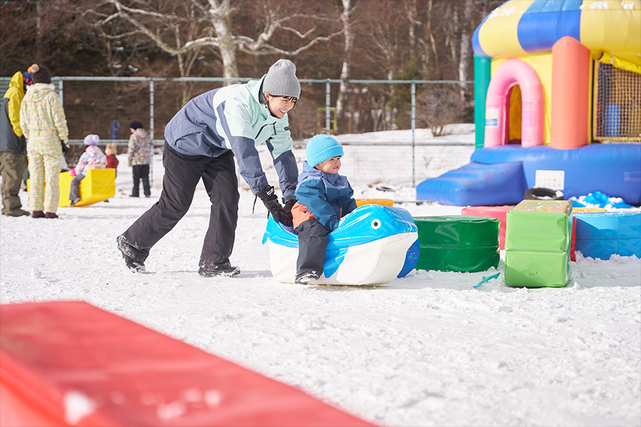 今年ベビーパークがリニューアルされてアイテムが充実し子どもの雪遊びデビューにぴったり。ふわふわの遊具もあり家族みんなが笑顔になれる空間です。