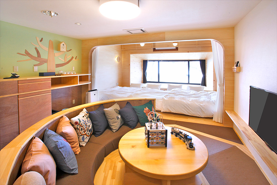 「ウェルカムベビーのお宿」にも認定されている「mamatoco room」もあり、小さな子ども連れのファミリーでも安心して滞在できる環境が整っています。