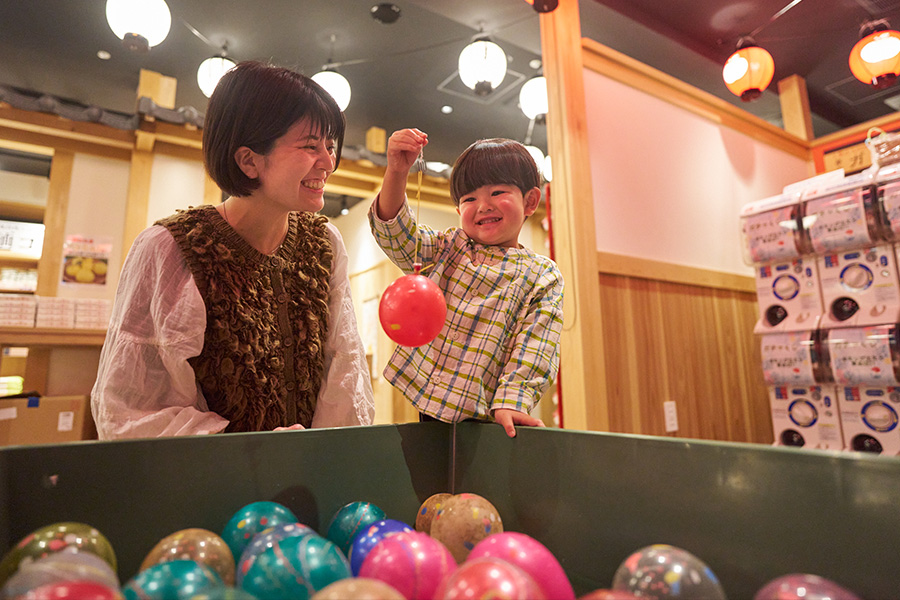 新本館3階にある屋内型温泉街「しらかば仲見世」では、長野県内の地酒や郷土食、伝統工芸品などがそろい、信州の魅力を五感で体験できます。