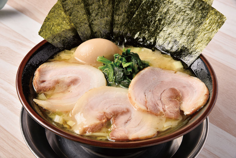 東京・町田の人気店発の横浜家系ラーメン専門店。豚骨がしっかり利いたスープは濃厚でクリーミー。低加水で硬めの特製中太麺との相性も抜群。麺の硬さ、タレの量、脂の量は好みで選択でき、テーブル上のさまざまな調味料で味のカスタマイズも楽しむことができます。