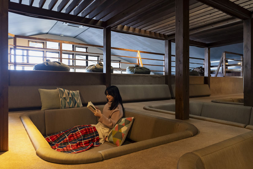 湯に浸かって体をほどいたあと、ラウンジのソファへ。