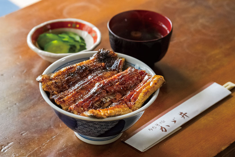 創業42年のうなぎの名店。良質な脂がのった三河一色産のうなぎを使用し、地下水の生簀で泳がせたうなぎを丁寧に仕込みます。備長炭の遠火の強火で焼き上げるのが“かゞ井流”で、皮はパリッと香ばしく、身はふっくら。香ばしい蒲焼きは魚沼産コシヒカリとともに提供されます。