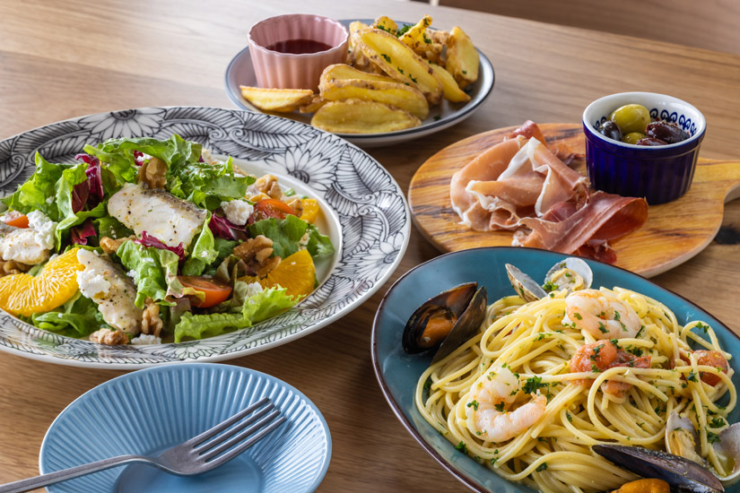 旅の楽しみのひとつ、美味しい食事は、開放感あふれるダイニングで。
