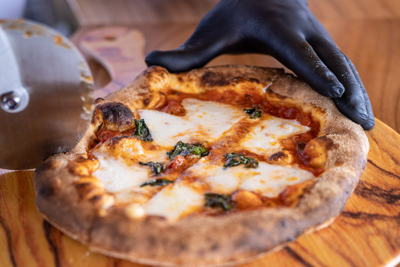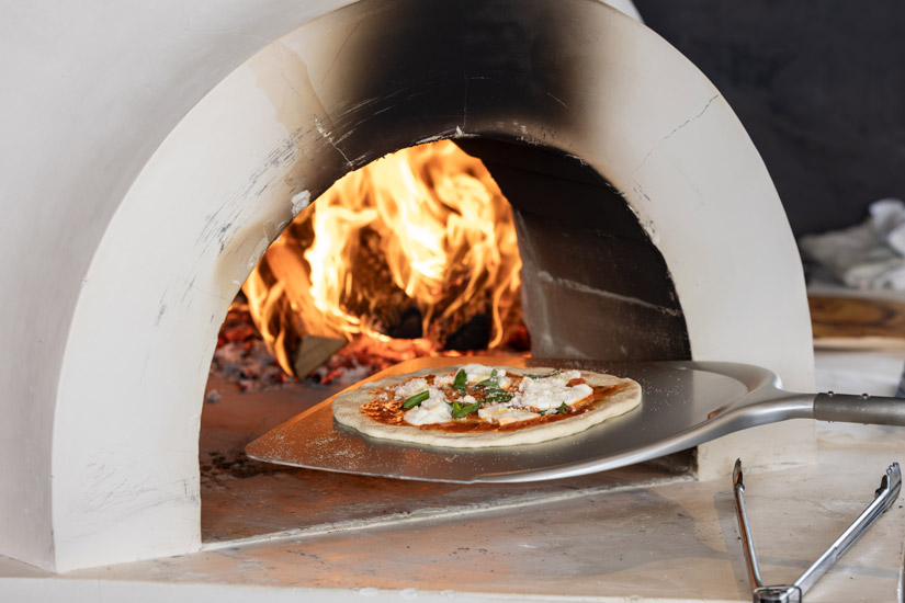 目玉のひとつが、特別に設えた石窯で焼き上げるピザ。