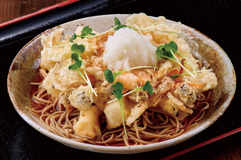 信州産長芋を使ったかき揚げそばです。サイコロ状の長芋がサクサクとした食感を生み、香ばしさが広がる味わい。軽やかに食べられながらも、しっかり食べ応えのある一杯です。