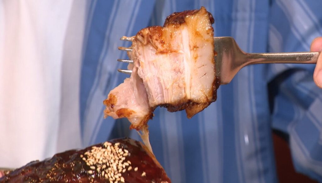 実際に食べてみると、脂身は勝手にとろけていき、肉もホロッと、ほどけていく柔らかさ。酸味やスパイスも感じられるソースと相まって、奥深い味わいです。