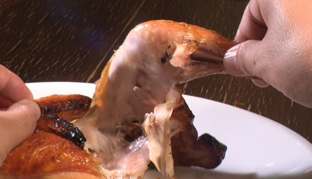 皮は香ばしく、肉はふっくら・ジューシー。シンプルな味付けが鶏肉本来の旨みを引き出しています。