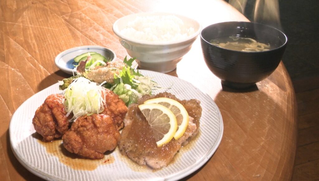 定食メニューも豊富!なかでもオススメなのが豚肉と鶏肉をダブルで楽しめる定食。豚肉は玉ねぎたっぷりの特製オニオンソースで味付け。