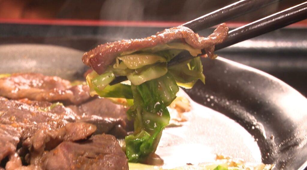 肉とキャベツを、この少し甘めのタレをつけて食べると、旨みが口いっぱいに広がります。当然ながら、ご飯にも合います!