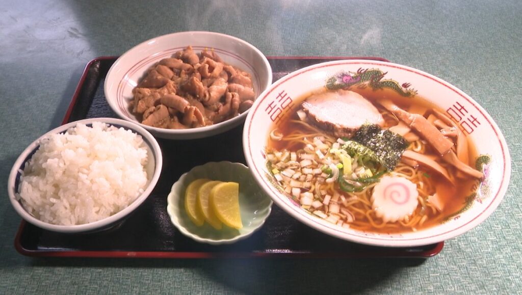 名物メニューは、ラーメンともつ煮がセットになった「ぽっぽや定食」。しょう油ラーメンは初めて食べる人でも懐かしさを覚えるような味わい。みそ仕立てのもつ煮はやわらかく煮込まれています。