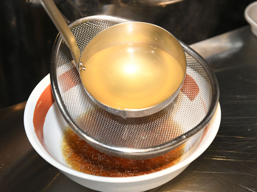 「背脂まぜそば」をはじめ、「背脂淡麗醤油ラーメン」、「背脂特濃醤油ラーメン」(各1,080円)で使われる良質な背脂は粒を大きく使うのがポイント。見た目ほどしつこくなくマイルドで、良い香りと甘みが感じられます。