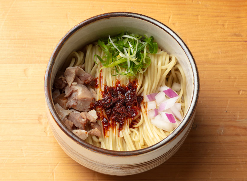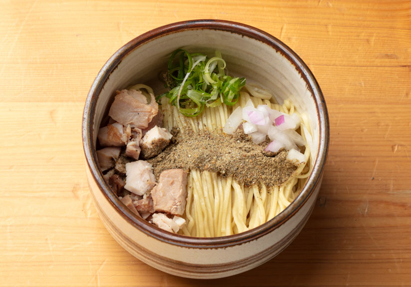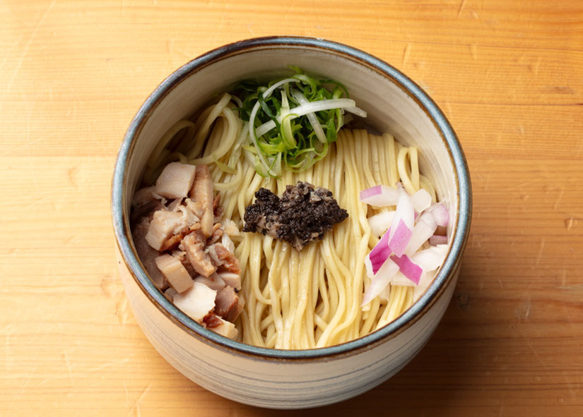 鶏の旨みを極限まで引き出した「超濃厚鶏搾りつけそば」(1,200円)は、もっちりとした麺を濃度の高いつけ汁にくぐらせて味わう、満足感たっぷりの一杯。薬味を添えることで、味の変化を楽しめるのも魅力のひとつです。