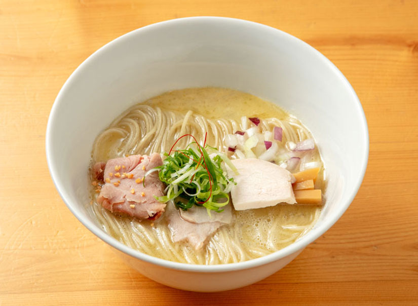 鶏の旨みを凝縮した濃厚な白湯スープが魅力の「鶏そば」(1,100円)。鶏ガラ、丸鶏、鶏肉を惜しみなく煮込んで仕上げたスープは、力強いコクがありながらも後味は驚くほど軽やか。細麺との組み合わせも絶妙で、濃厚系でありながら重さを感じさせない、洗練されたバランスが際立つ一杯です。