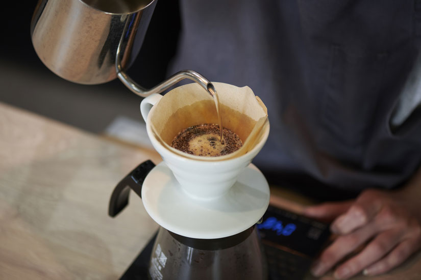 磯上さんこだわりのコーヒーは、「ひげのコーヒー」から仕入れた豆を使用。注文を受けてからハンドドリップで抽出したコーヒーとともに落ち着いたカフェタイムを過ごすのもおすすめ。