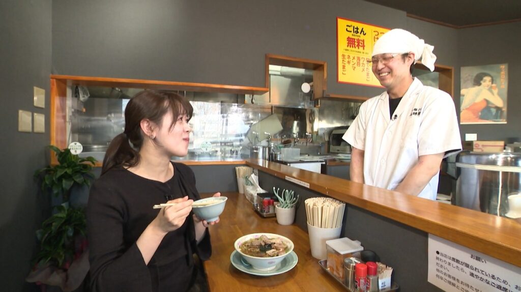 店のコンセプトは昔懐かしい中華そば。スープはどこかほっとするような香りで優しい味わい。麺はぷりぷり、ツルツルです。チューシューは、赤身と脂身のバランスがいい「豚の腕肉」を使用。提供前に切って、器いっぱいに盛り付けるのが、店のこだわりです。チャーシューの旨味で、ご飯も進みます。