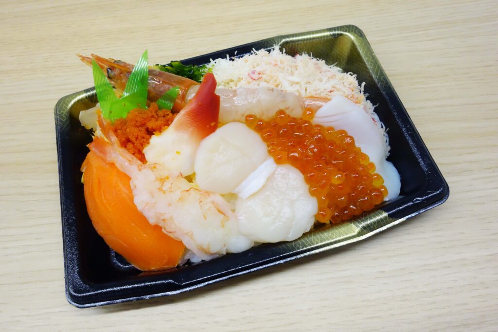 全国駅弁大会の魅力は、地域の食文化や歴史が一つのお弁当に凝縮されていること。かに・いくら・ほたてなどを盛り合せた海鮮弁当や、えんがわの押し寿司など、海の恵みを味わえる駅弁が豊富に揃います。