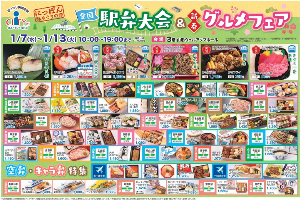 1/7~13開催!全国の人気駅弁とグルメが集結「全国駅弁大会&新春グルメフェア」で味わう、冬のおいしい旅気分@山形村