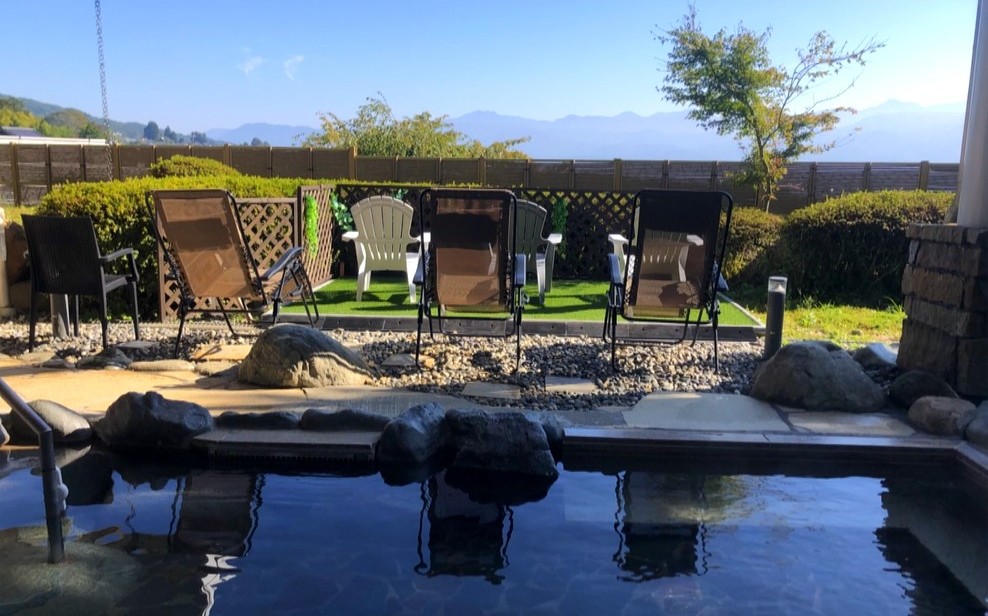 施設は伊那谷を見下ろす高台にあり、露天風呂も大きな魅力。南アルプスの壮大なパノラマビューが広がり、晴れた日には山々の美しい姿をくっきりと見ることができます。雪山の景色もきっときれいでしょうね。