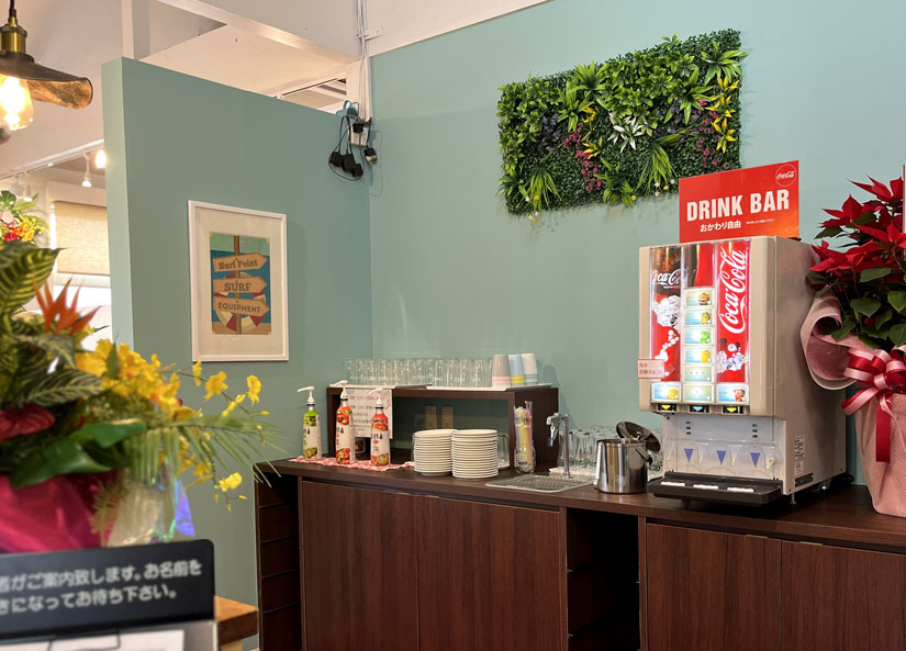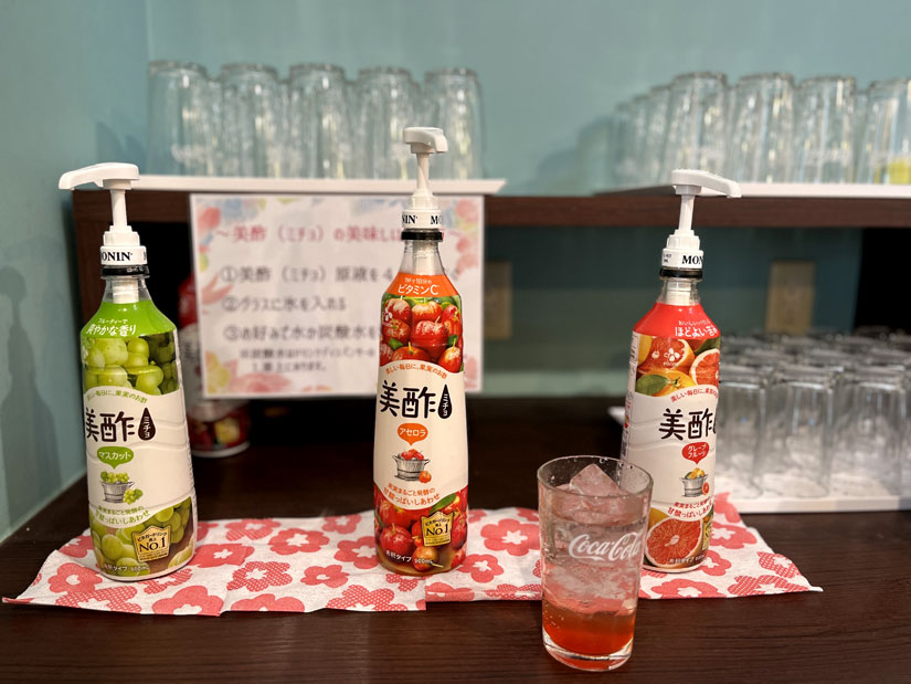 ドリンクバー500円(ランチタイム380円)は、ソフトドリンクのみ。「美酢」の炭酸割りもできますよ。