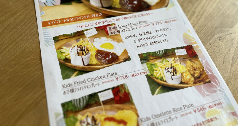 お店は通し営業。食事メニューは、ハワイアンメニューからパスタ、オムライスまでそろい、10時からラストオーダーまで共通メニューを提供。