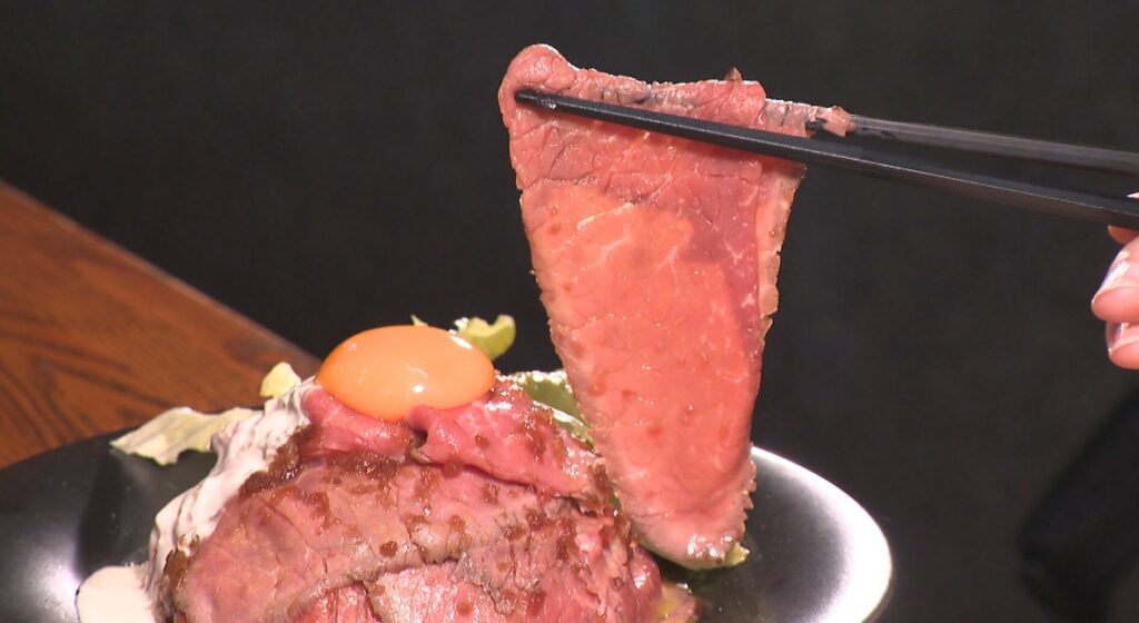 店主は市野瀬光さん。店を開いた理由を尋ねると、「肉が大好きだから」。自身も毎週1キロの肉を食べているそうです。そんな市野瀬さんが選んだのは、主に穀物を与えて育てた牛。赤身は柔らかく、適度に脂肪があり、うま味が強いそうです。