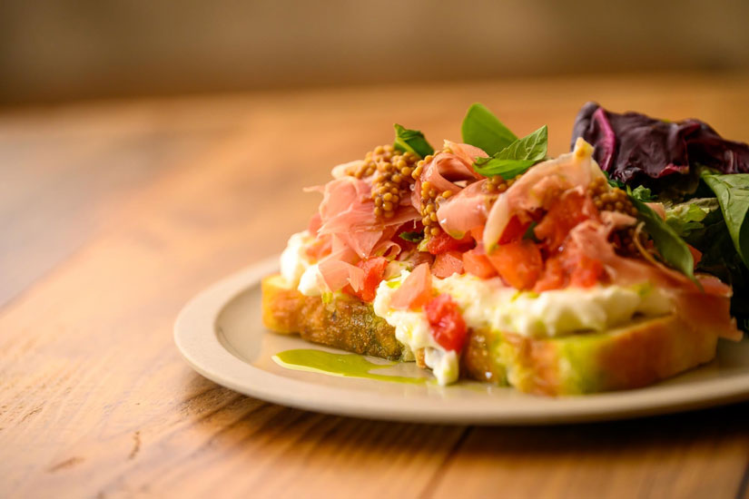 看板メニューは、オープンサンド。具材は、できるだけ地元産の食材を使用することを意識し、食材選びにもこだわっています。