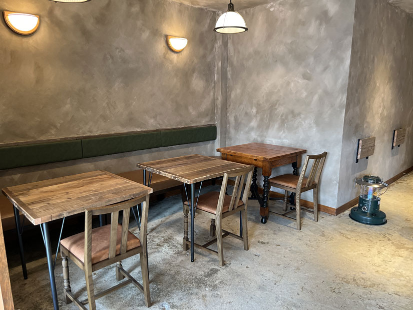 カウンター4席、2人掛け席3席
