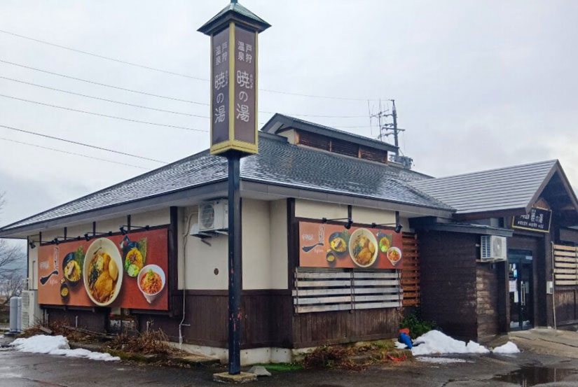 「戸狩温泉スキー場」近くにある戸狩温泉「暁の湯」内で営業中。