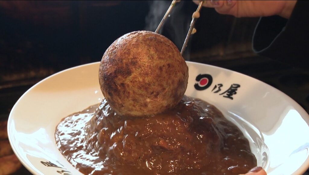店にはさらに驚きのコラボメニューがあります。ばくだん焼きをカレーライスに乗せた「ばくだん焼カレー」。カレーは日本最大級のカレーイベントでグランプリを獲得、殿堂入りを果たした「日乃屋」のもの。その店から「ばくだん焼とコラボレーションしたら」という提案があり、誕生しました。
