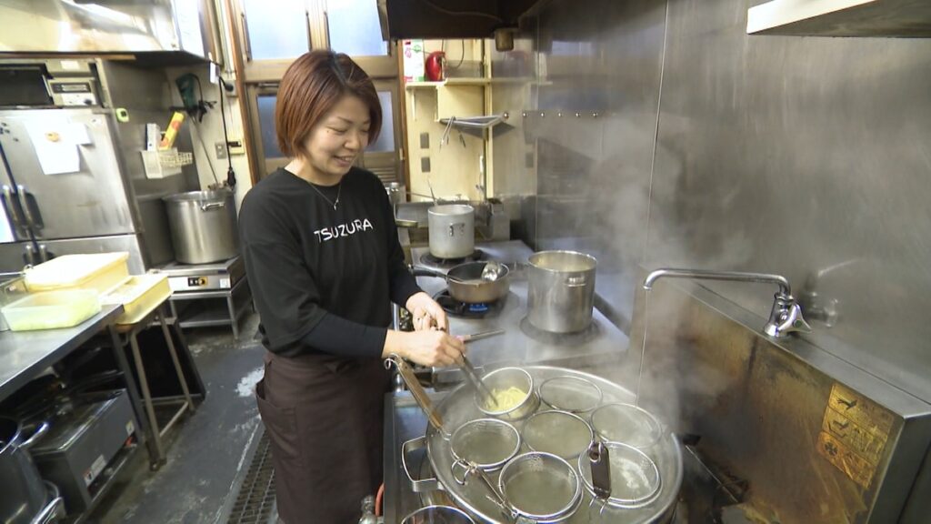 ラーメン担当の妻・亜季さんは、松本市の人気店「寸八」で腕を磨きました。イチオシは豚骨醤油ラーメン。豚の頭骨をメインに、12時間・一晩かけて炊き上げ、クリーミーなスープを実現しました。